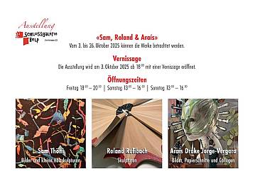 03.10. - 19.10.: Sam Thöni (Malerei), Roland Rufibach (Skulpturen), Arais Drake Jorge-Vergara (Bilder)